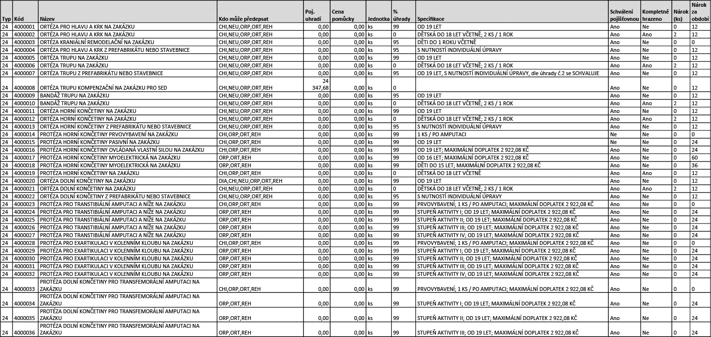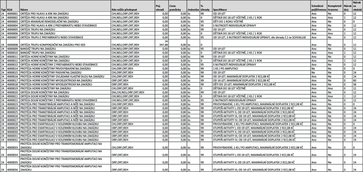 Týká se procesu schvalování zdravotní pojišťovnou. Lékařů se týkají řádky z níže uvedené tabulky, které jsou vyznačeny modře. Je potřeba nastavit stav schválení: buď že nevyžaduje schválení, nebo je ke schválení.